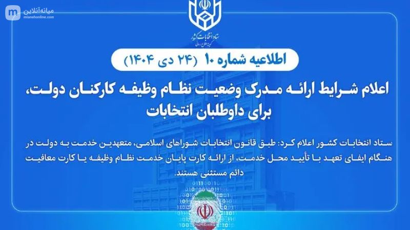 شرایط ارائه مدرک وضعیت نظام وظیفه کارکنان دولت برای داوطلبان انتخابات