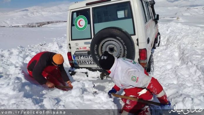 نجات دو مادر باردار در روستاهای برفگیر ترکمانچای توسط هلال احمر میانه