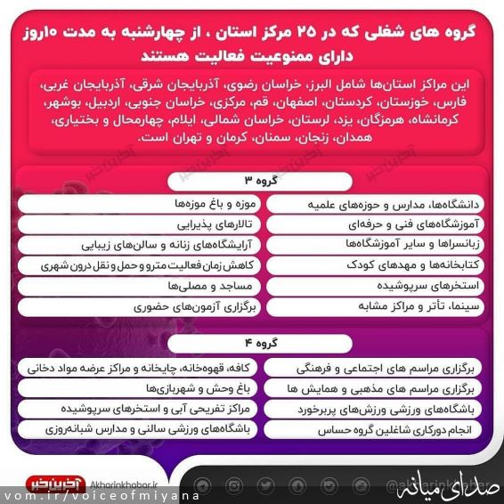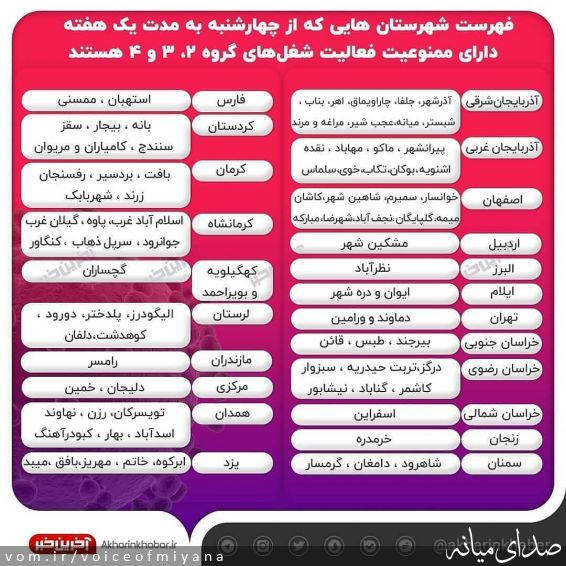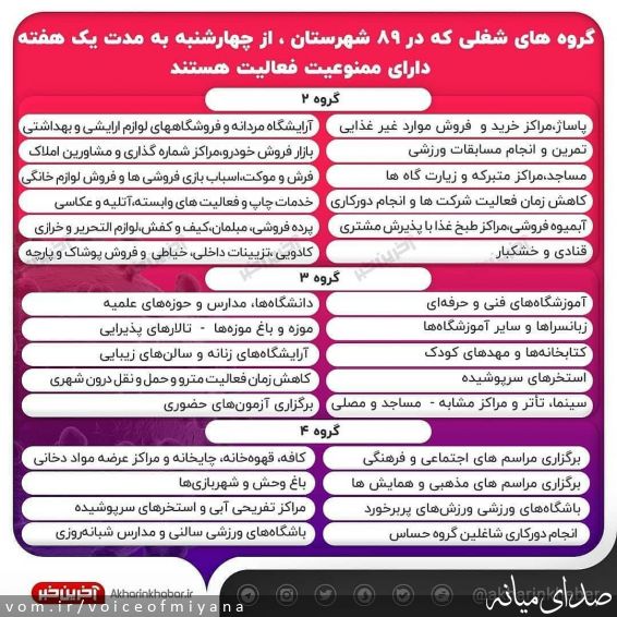 محدودیت ها و ممنوعیت هایی که باید از چهارشنبه در "شهرستان میانه" اعمال شود
