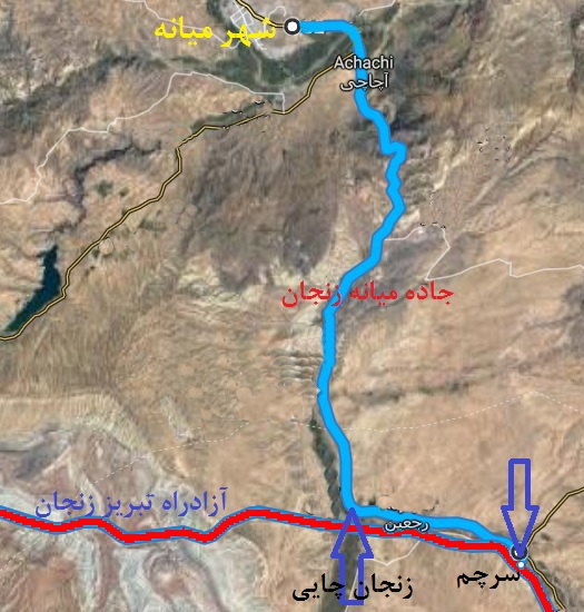 این جاده که  میاندواب در آذربایجان غربی را به میانه در آذربایجان شرقی به  با 185 کیلومتر طول وصل میکند بدلیل آینکه در کیلومتر 131 به اتوبان زنجان تبریز متصل میشود  جاده سرچم نامیده می‌شود.