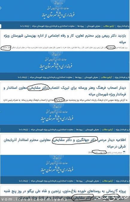این عنوان از همان ابتدای فرمانداری ایشان، در سایت رسمی ایشان مورد استفاده قرار میگیرد که قطعاً این کار یک تخلف است و ایشان در سال 97 چنین مدرکی نداشته اند ولی برای نمونه از سایت رسمی فرمانداری میانه چند نمونه از اخبار منتشره را بازنشر میدهیم: