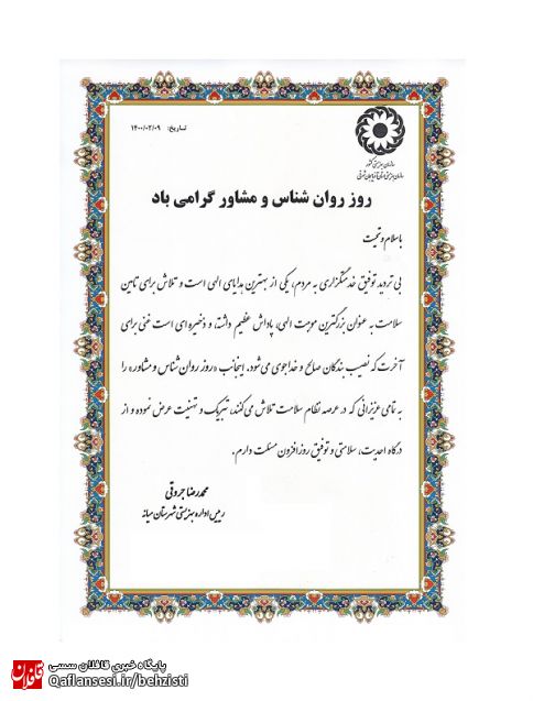 پیام تبریک رییس اداره بهزیستی شهرستان میانه به مناسبت فرا رسیدن روز روان شناس و مشاور قافلان سسی ۰۹ اردیبهشت ۱۴۰۰ ساعت ۰۹:۵۱ مشاهده خبر در سایت اصلی