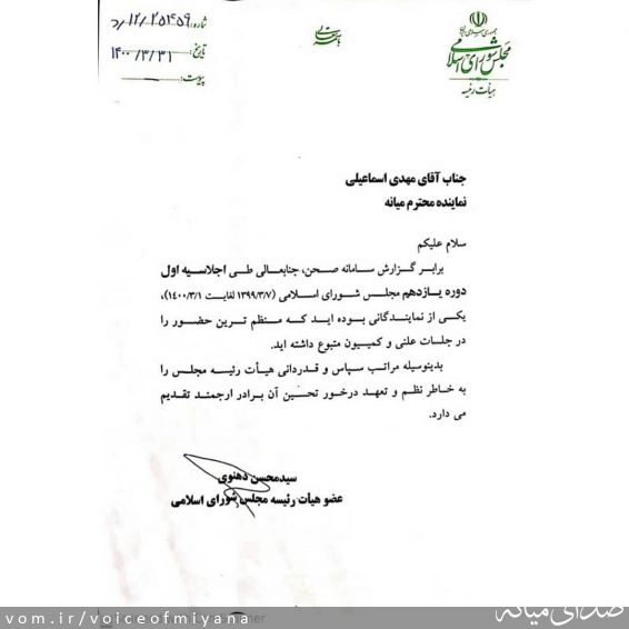 بنابر گزارش سامانه صحن مهدی اسماعیلی نماینده مردم شریف شهرستان میانه طی اجلاسیه اول دور یازدهم مجلس شورای اسلامی یکی از نمایندگانی می باشد که منظمترین حضور را در جلسات ...