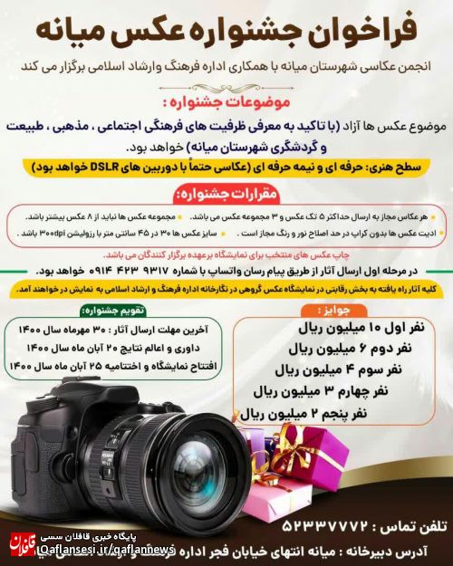 فراخوان جشنواره عکس میانه - انجمن عکاسی شهرستان میانه با همکاری اداره فرهنگ وارشاد اسلامی برگزار می کند
