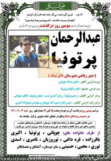 آگهي مراسم سوم مرحوم پرتونیا در شهر میانه ... صدای میانه ۰۳ دی ۱۴۰۰ ساعت ۲۲:۳۷ مشاهده خبر در سایت اصلی