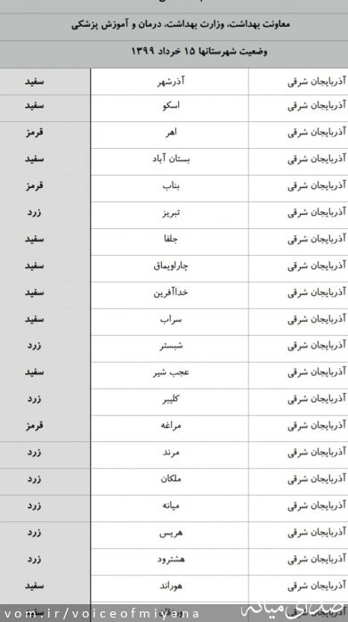 آخرین وضعیت میانه و شهرستانهای استان در ابتلا به کرونا
