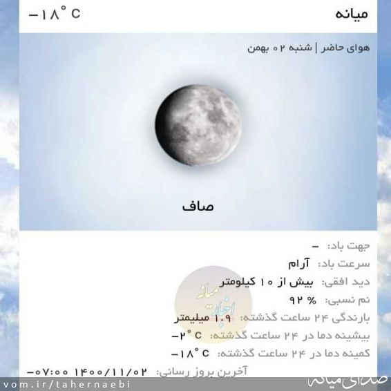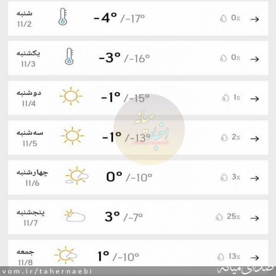 ثبت سردترین روز سال در شهرستان میانه/ پیش بینی آب و هوای هفته