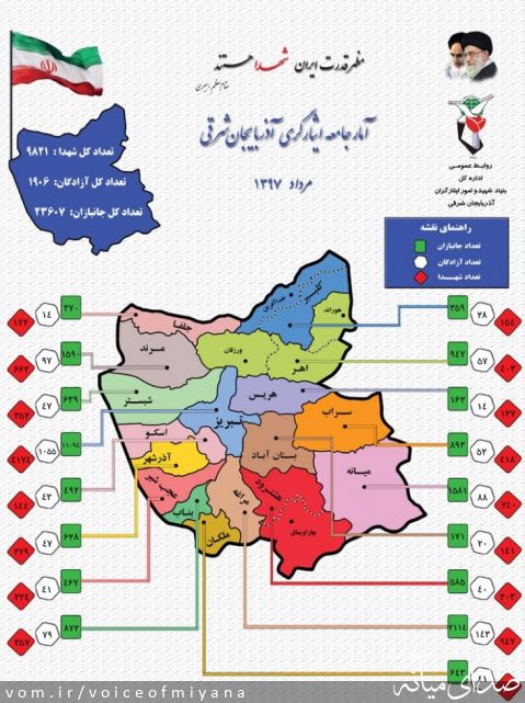 آمار شهدا، جانبازان و آزادگان آذربایجانشرقی به تفکیک شهرستان ها