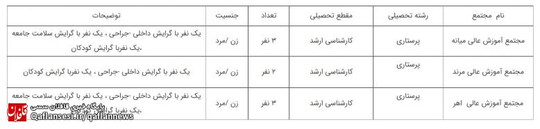 لیست رشتههای مورد نیاز دانشکدهها برای فراخوان جهت جذب هیئت علمی متعهد خدمت مجتمع آموزش عالی میانه و مرند و اهر