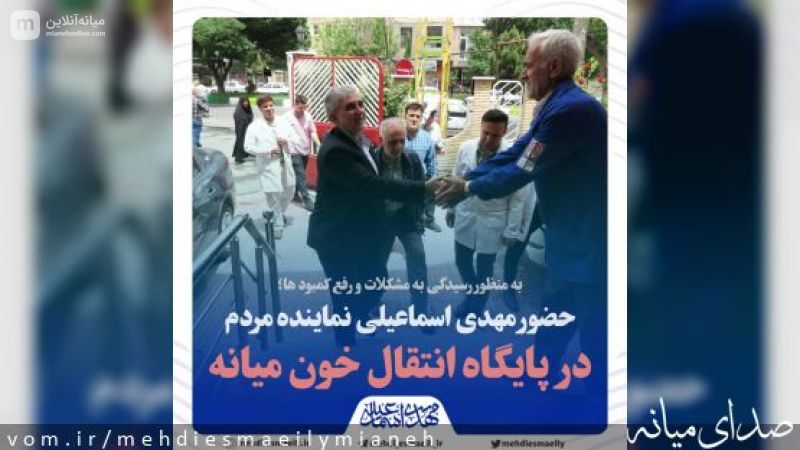 مهدی اسماعیلی نماینده مردم میانه با حضور در پایگاه انتقال خون میانه از نزدیک در جریان روند خدمت رسانی پرسنل این مجموعه و درخواستها و کمبودهای این پایگاه قرار گرفت.