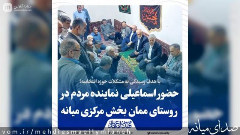 در جریان حضور نماینده مردم میانه و نشست و گفتگوی صمیمی با اهالی روستای ممان که با حضور روسای ادارات امور آب و شرکت گاز همراه بود، مسایل و مشکلات عمومی این روستا مورد بررسی و مدیران از نزدیک مشکلات را مشاهده و برنامه ریزی لازم در جهت کاستن و حل آنان را اتخاذ کردند.