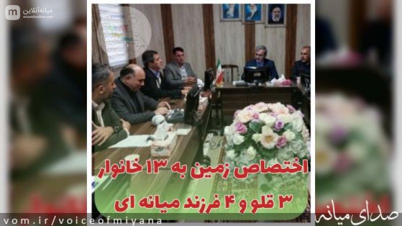 معاون استاندار و فرماندار ویژه میانه از تخصیص زمین برای ۱۳ خانوار دارای ۳ قلو و چهار فرزندی خبر داده، گفت: این زمینها در شرف واگذاری است و این پروسه توسط اداره راه و شهرسازی انجام میپذیرد.