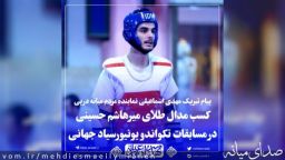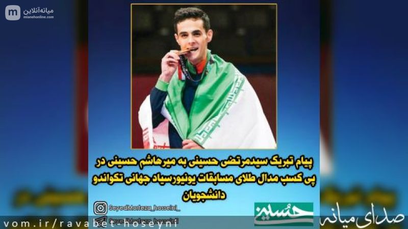 پیام تبریک سیدمرتضی حسینی نماینده مردم شریف شهرستان میانه در مجلس شورای اسلامی به میرهاشم حسینی در پی کسب مدال طلای مسابقات یونیورسیاد جهانی تکواندو دانشجویان