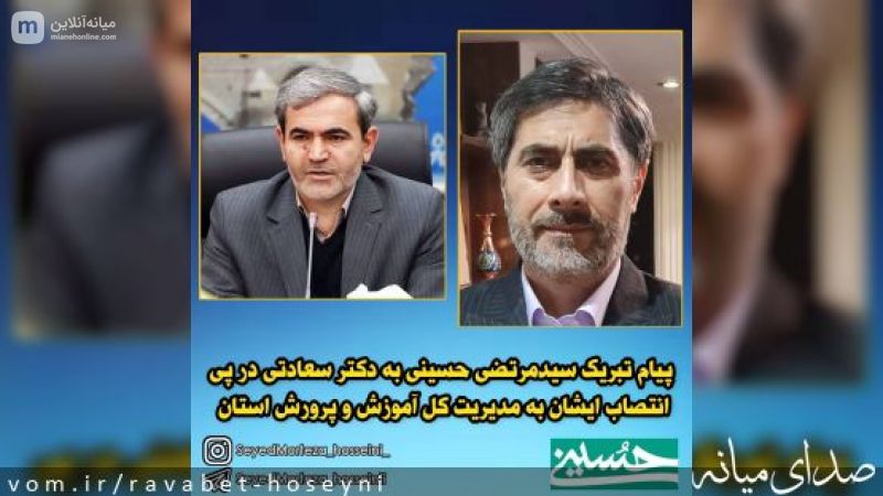 پیام تبریک سیدمرتضی حسینی به دکتر سعادتی در پی انتصاب ایشان به مدیریت کل آموزش و پرورش استان