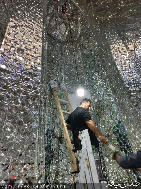 ترمیم آینه کاری امامزاده اسماعیل توسط هنرمند آینه کار میانه ای