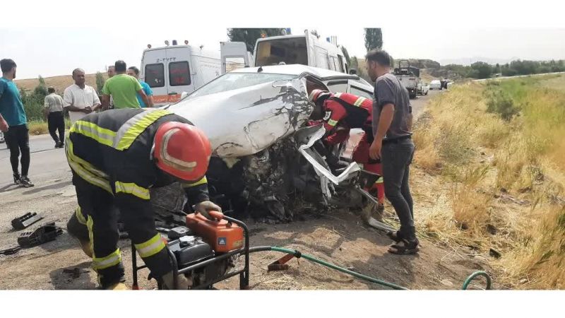 راننده گرفتار در داخل خودروی تصادفی سمند توسط نیروهای امدادی آتش نشانی میانه نجات یافت.