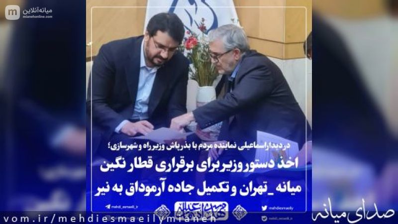 اخذ دستور سریع برقراری قطار نگین میانه - تهران توسط اسماعیلی نماینده مردم میانه از وزیر راه و شهرسازی