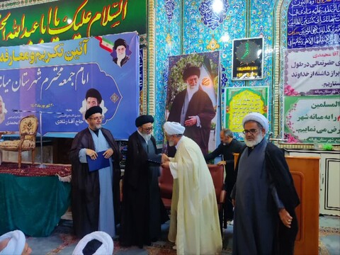 مراسم تکریم و معارفه امام جمعه میانه امروز با حضور حجت الاسلام والمسلمین آل هاشم نماینده ولی فقیه در استان آذربایجان شرقی و جمعی از مردم مومن و انقلابی، ائمه جمعه شهرهای همجوار، مسئولین منطقه، خانواده شهدا و جمعی از روحانیون در محل مسجد جامع شهر میانه برگزار شد.