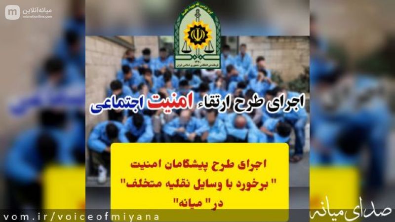 سرهنگ" حسن رفیعی" اظهار داشت: مأموران انتظامی شهرستان با هدف افزایش احساس آرامش فردی و عمومی، پاسخگویی به درخواست‌ها و مطالبات مردمی و سلب تحرک از مجرمان و قانون گریزان، طرح پیشگامان امنیت را بصورت محسوس و نامحسوس با محوریت برخورد با وسایل نقلیه متخلف در ۱۲ ساعت گذشته اجرا کردند. وی افزود: این طرح ضربتی با حضور تیم‌های گشت پلیس اجرایی شد که در همین رابطه تعداد ۱۱ دستگاه خودرو متخلف بعلت عدم رعایت و پایبندی به قوانین راهنمایی و رانندگی و تعداد ۷فقره موتورسیکلت فاقد پلاک، دارای پلاک مخدوش، تغییر وضعیت و عدم به همراه داشتن مدارک و آلودگی صوتی شناسایی، توقیف و روانه پارکینگ شدند. فرمانده انتظامی شهرستان میانه با بیان اینکه صرف استفاده از قوه قهریه در برخورد نتیجه بخش نخواهد بود، تاکید کرد: این امر نیازمند آموزش و فرهنگ سازی بوده و می‌طلبد تمامی سازمان‌های متولی امر در راستای آموزش و فرهنگ سازی اقدام نمایند. سرهنگ  " رفیعی" ضمن تقدیر از همکاری صمیمانه مردم با پلیس، خاطر نشان کرد: اجرای این قبیل طرح‌ها به صورت مستمر در دستور کار انتظامی شهرستان قرار دارد و شهروندان می‌توانند در صورت اطلاع از هرگونه فعالیت مجرمانه، مراتب را به مرکز فوریت‌های پلیسی ۱۱۰ اعلام کنند.  معاونت فرهنگی و اجتماعی فرماندهی انتظامی میانه