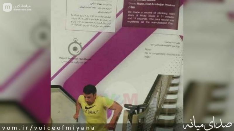 درطول تمریناتم  تونستم درسال ۹۷درروزجهانی معلولین اولین مسابقه پله نوردی شرکت کنم وبتونم درعرض ۵۱دقیقه ۱۶۹۳پله رو فتح کنم واسم بنده درکتاب رکوردهای ملی ایران ثبت وهمچنین تو گینس ایران ثبت بشه بعد درسال ۱۴۰۲ توانستم  اسمم رو توایمارو کمپانی‌های چندجانبه  جهانی به تازگی ثبت کنم وپرچم ایران  وافتخار میانه همیشه بربلندای جهان سرافراز کرده باشم.