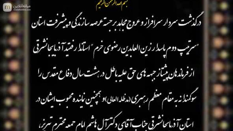 پیام تسلیت شهردار و شورای اسلامی شهر میانه در پی درگذشت سردار پاسدار زین العابدین رضوی خرم استاندار فقید آذربایجانشرقی
