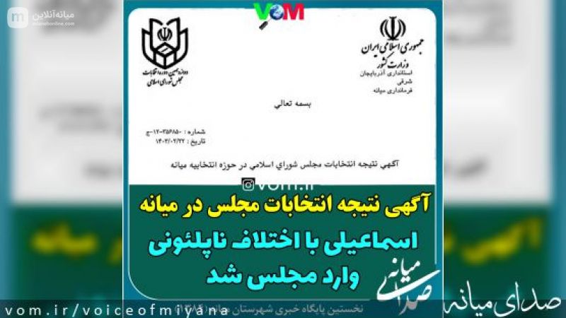با اعلام نتایج انتخابات مجلس در میانه توسط فرمانداری ، آرای دونامزد مشخص شد که طی آن اسماعیلی با ۲۲۷۶۱ رای در مقابل ۲۲۲۶۳ رای حسینی به مجلس دوازدهم راه ...