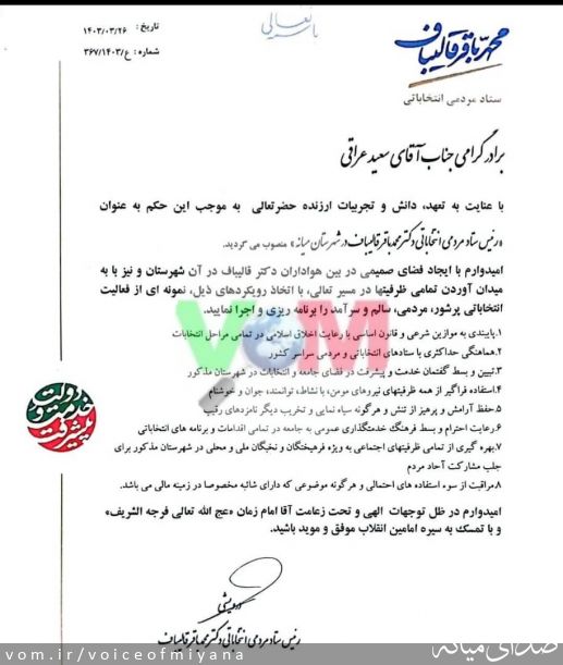 ستاد قالیباف برای میانه دورئیس معرفی کرده است