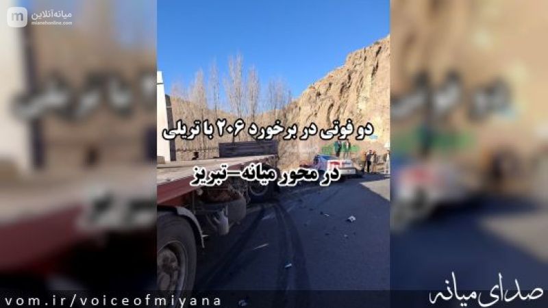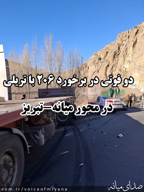 ۲ فوتی حاصل برخورد خودرو تریلی با پژو ۲۰۶ در جاده میانه به تبریز
