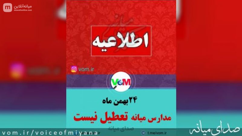 ۲۴ بهمن ماه/ مدارس میانه تعطیل نیست