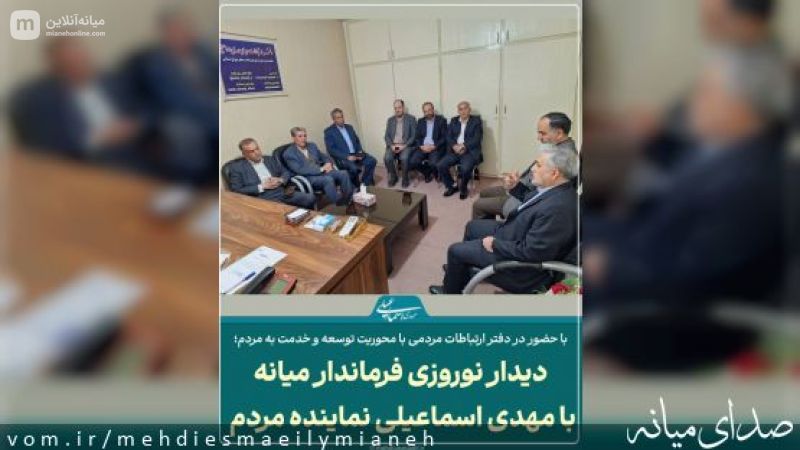 محمدرضا مشایخی معاون استاندار و فرماندار ویژه شهرستان میانه با حضور در دفتر ارتباطات مردمی در دیدار با مهدی اسماعیلی نماینده مردم شریف شهرستان‌های میانه و ترکمانچای در مجلس شورای اسلامی ضمن تبریک سال نو و قدردانی از اقدامات و پیگیری مطالبات مردم شهرستان از مبادی فرادستی گفت وضعیت فعلی خدمات ادارات در شهرستان ایده آل و مورد رضایت مردم نیست و امیدواریم در سال پیشرو با همراهی مسئولین به خصوص مساعدت نمایندگان مردم میانه در مجلس شورای اسلامی قدم‌های خوبی در راستای خدمت رسانی و نظم و انضباط اداری و توسعه شهرستان برداریم.