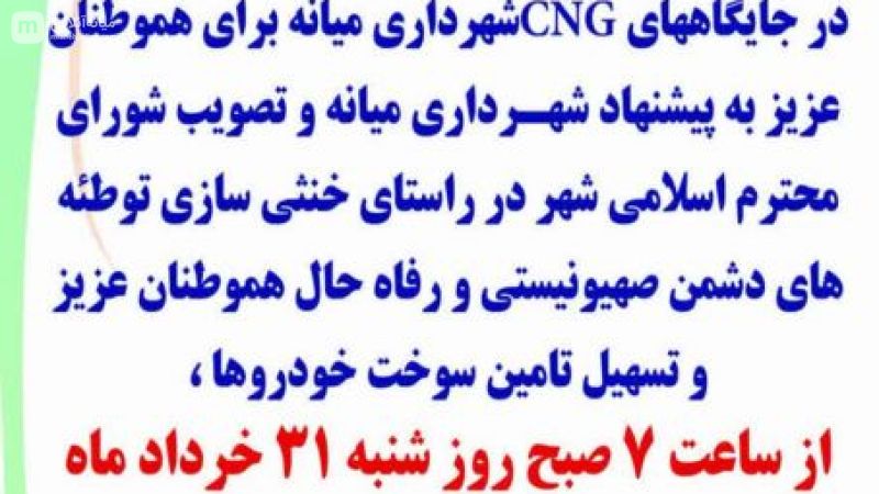 شهرداری میانه،سوخت CNG را یک هفته رایگان کرد
