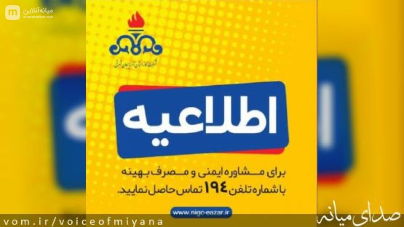 احتراماً به اطلاع مشترکین محترم شهرک اندیشه و شهرک امام شهرستان میانه می رساند بدلیل اجرای عملیات گازرسانی به شهرک نیاوران، جریان گاز مربوطه در روز یکشنبه مورخ۱۴۰۴/۰۶/۳۰ ازساعت ۹صبح لغایت ۱۵ قطع خواهد شد.